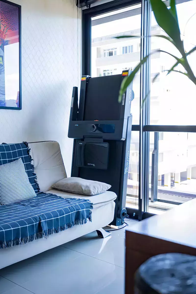 - Áudio Integrado – Alto-falantes embutidos para uma experiência mais dinâmica durante o treino;